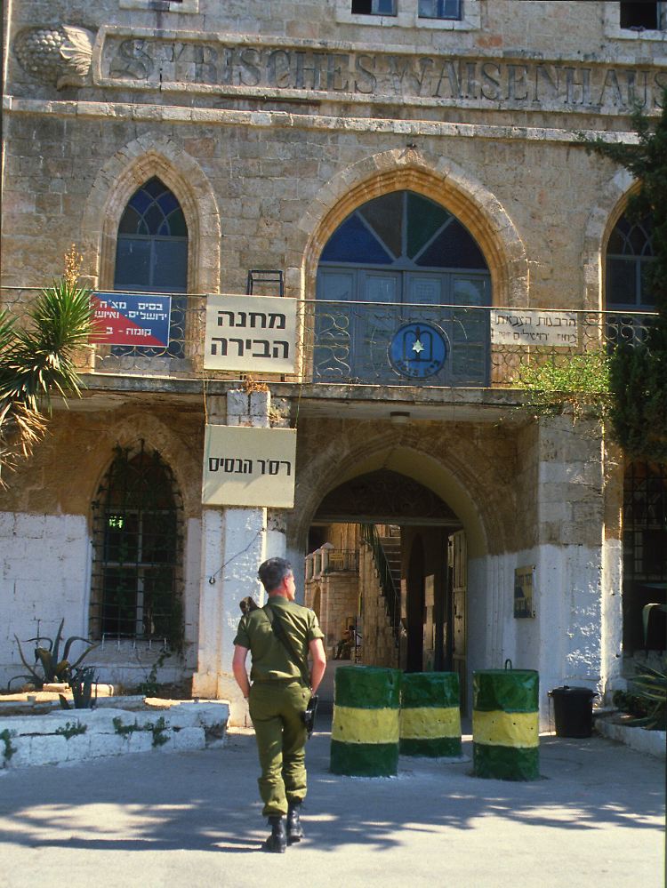 Nach 1948 erbte das israelische Militär das Gelände und richtete in der Kirche den Stadtoffizier ein. Tausende jüdische Soldaten passierten das altertümliche Tor mit Zwiebeltürmchen und der deutschen Aufschrift "Herr Jesu, lieber Heiland, erbarm Dich unser" über dem Eingang des Hauptgebäudes, um sich beim Militär anzumelden oder Krankenscheine abzuholen. Die historischen Gebäude verrotteten. Der riesige Kirchraum wurde zunächst in eine Handballhalle verwandelt, bis die Verkleidung des Daches abstürzte.