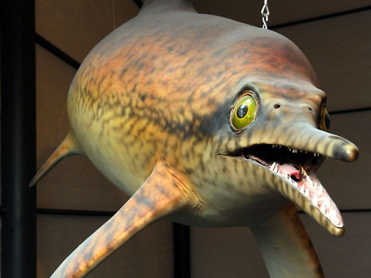 Fischsaurier (Ichthyosaurier) waren bis zu sechs Meter lange Jäger der Urmeere, die äußerlich an heute lebende Delfine erinnern. Sie ernährten sich vermutlich von Fischen und tintenfischartigen Tieren. Ihre lange Schnauze war mit mehr als hundert spitzen, krokodilähnlichen Zähnen bewaffnet.