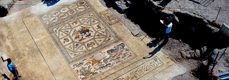 "Wir haben Abdrücke von Füßen und Sandalen in den Größen 34, 37, 42 und 44 gefunden", sagte Jacques Neguer von der Altertumsbehörde. "Mindestens einer der Abdrücke ähnelt einer modernen Sandale." Vermutlich habe eine Gruppe von Bauarbeitern den Mörtel mit den Füßen eingestampft. Die Archäologen gehen davon aus, dass der Mosaikboden Teil einer Villa war, die im römischen Zeitalter einem reichen Mann gehörte.