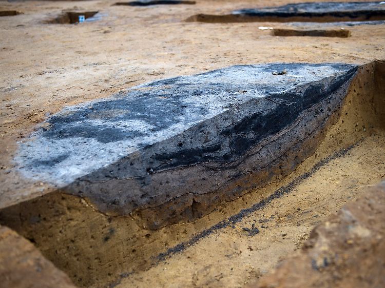 Auf dem Arbeitsstreifen in Owschlag sind auf der ockerfarbenen Oberfläche dunkle Verfärbungen zu erkennen - an diesen Stellen habe sich humoses Material der Pfosten abgelagert, erklärte Klems. "Dass das so wunderschön deutlich ist, das hat man selten", sagte Segschneider. Haus- und Hofabmessungen waren deutlich zu erkennen und von den Wissenschaftlern markiert worden. Auch Schlackereste, die unter einem ehemaligen Ofen in eine Grube geflossen waren, wurden durch die Grabungen sichtbar.