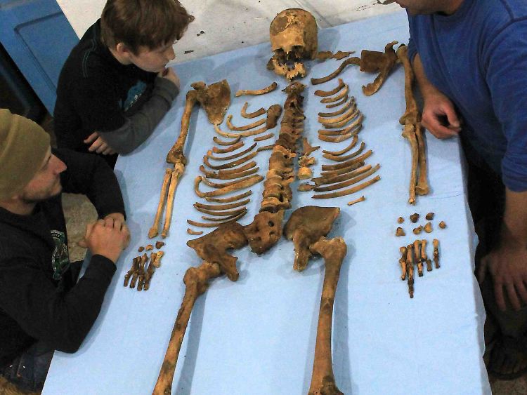 Forscher untersuchen das Skelett Senebkais. Der Leichnam, der ursprünglich mumifiziert war, war von Grabräubern zerlegt worden.