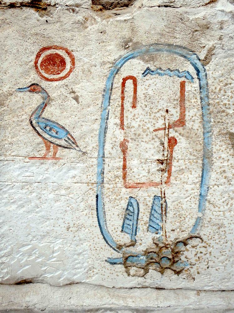 Eine Kartusche in dem Grab zeigt die Zeichen für den Namen des ägyptischen Königs Senebkai.