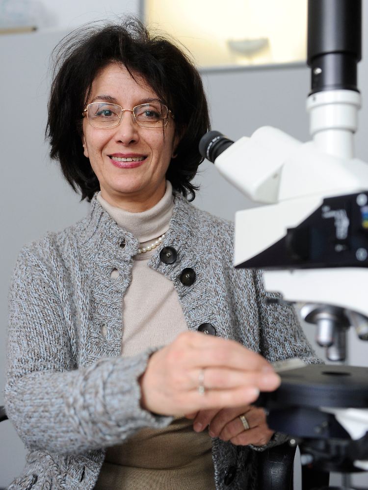 Die Mineralogin Farahnaz Daliran vom Institut für Angewandte Geowissenschaften des Karlsruher Institut für Technologie (KIT) an ihrem Arbeitsplatz.