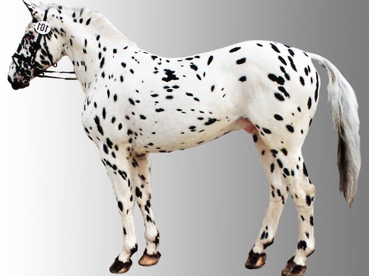 Hier im Bild: ein dänischer Knabstrupper mit Tigerscheckenfärbung. Er sieht seinen steinzeitlichen Verwandten recht ähnlich.